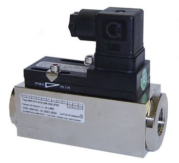 Adjustable flow switches with floating piston. The calibration system, with safety lock, allows precise adjustment of the set value. Electrical connection is made by a DIN 43650 connector and PG9 cable gland. Maximum working pressure 200 bar. Maximum temperature 120 ° C. Maximum viscosity of the liquid 300 Cst. Working in any position.