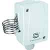 Regulador de temperatura mecánico / regulador de temperatura de locales húmedos THERMASREG~ TR con salida de conmutación (~~nstage) con capilar de acero inoxidable (sensor espiral) que funciona sin fuente de tensión externa. Adecuado para el control de la temperatura y la regulación de la generación de calor, en instalaciones de calefacción, climatización, ventilación, para ventilar, refrigerar y climatizar naves, cámaras frigoríficas, invernaderos, centros de jardinería, establos y almacenes. Un termostato de ambiente industrial de montaje en superficie para uso en exteriores, así como en locales húmedos.
