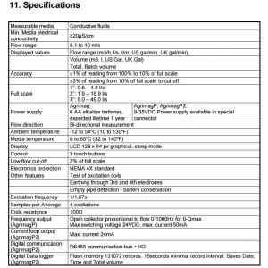 De Agrimag is een goedkope, op batterijen werkende elektromagnetische stroommeter die een volledige doorlaat heeft en geen bewegende delen, dus zeer tolerant is voor vuil en sediment enz. Geschikt voor water en elke vloeistof met een geleidbaarheid van 20 µS/cm (bijv. gebaseerd).