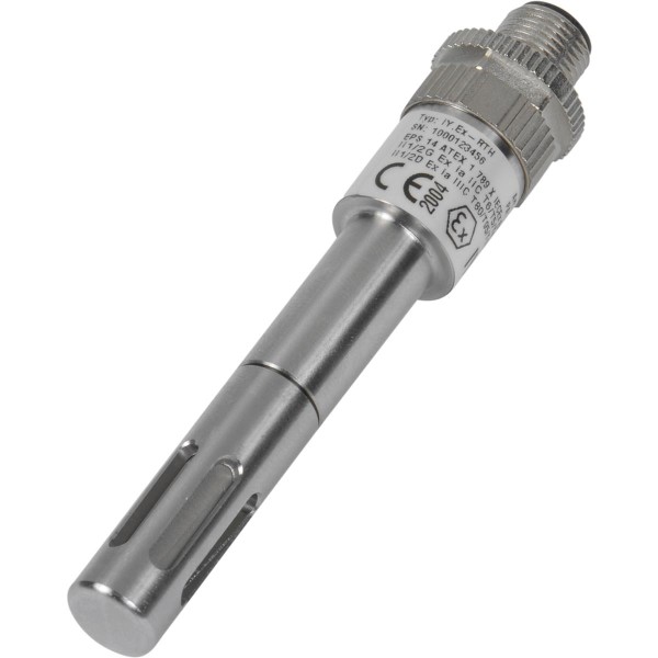 De meegeleverde sensor is uitgevoerd in roestvrij staal en eveneens voorzien van IP66-bescherming. Deze sensor meet zowel temperatuur als relatieve vochtigheid met een bereik van -40 tot +125°C en 0 tot 100 procent r.F., en beschikt over een insteekdiepte van 100 mm. Dankzij de ATEX- en IECEx-certificering is het complete systeem geschikt voor gebruik in explosiegevaarlijke zones.